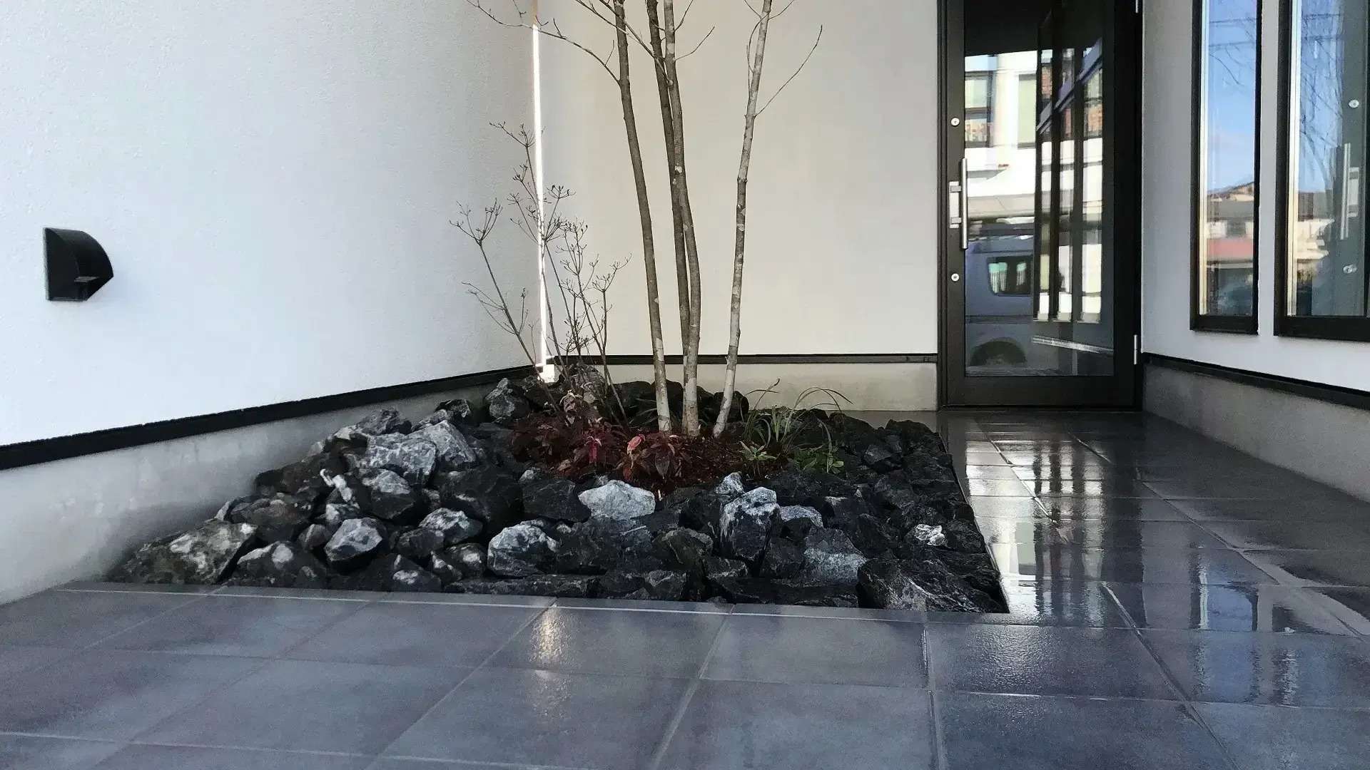 出入口から道路までの歩道を、石畳やコンクリート、タイルなどで作り上げます。